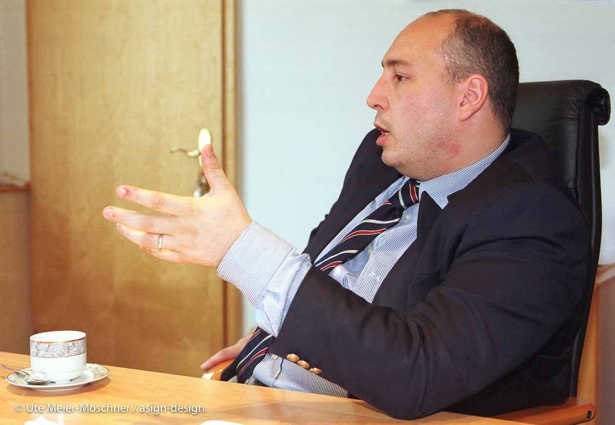 Köln, 27.7.2000: Mehmet Erbakan, zu diesem Zeitpunkt Generalsekretär des islamistischen Verbandes Milli Görüs und Neffe des früheren türkischen Ministerpräsidenten Necmettin Erbakan, Führer der islamistischen Wohlfahrtspartei.